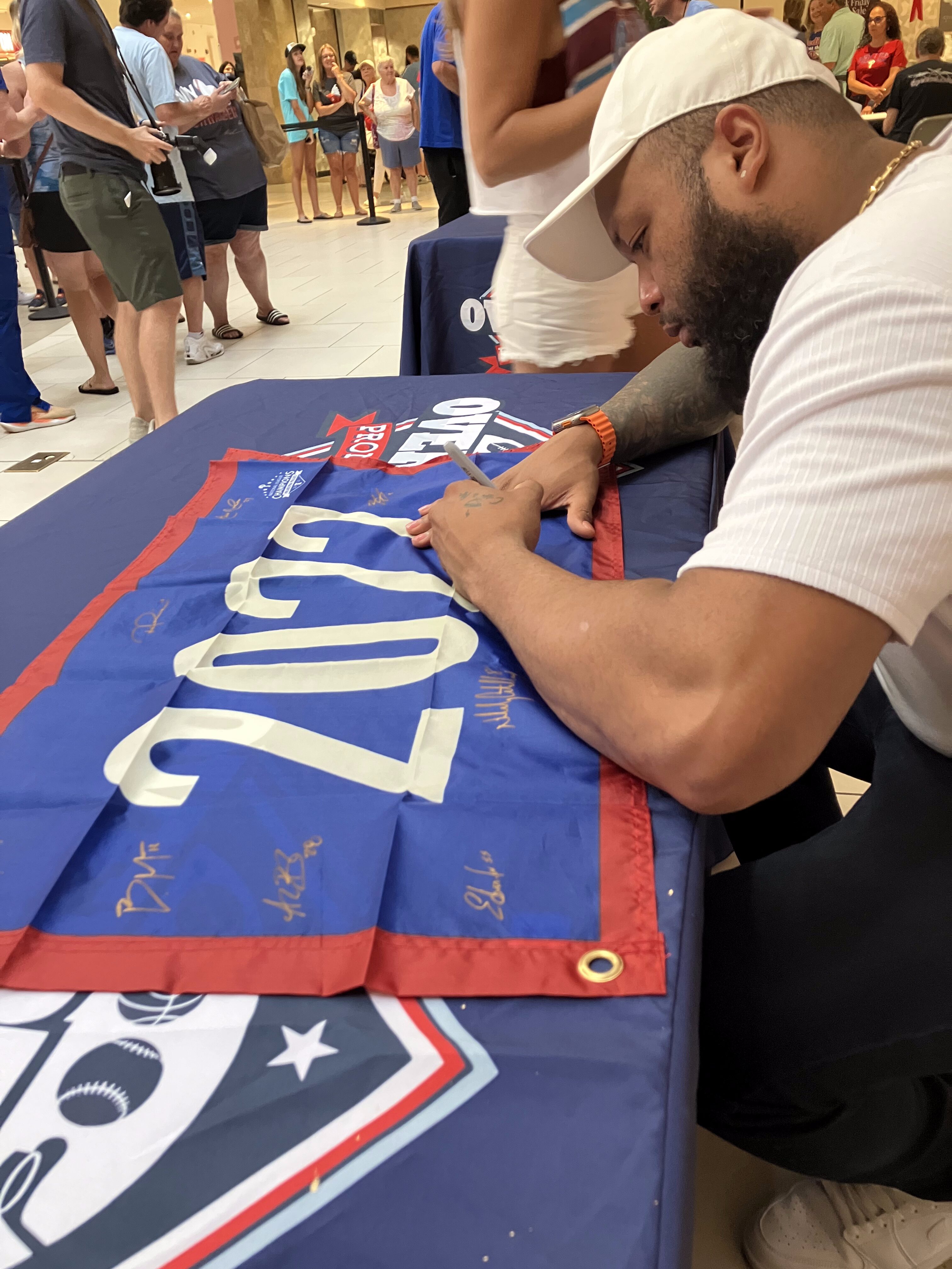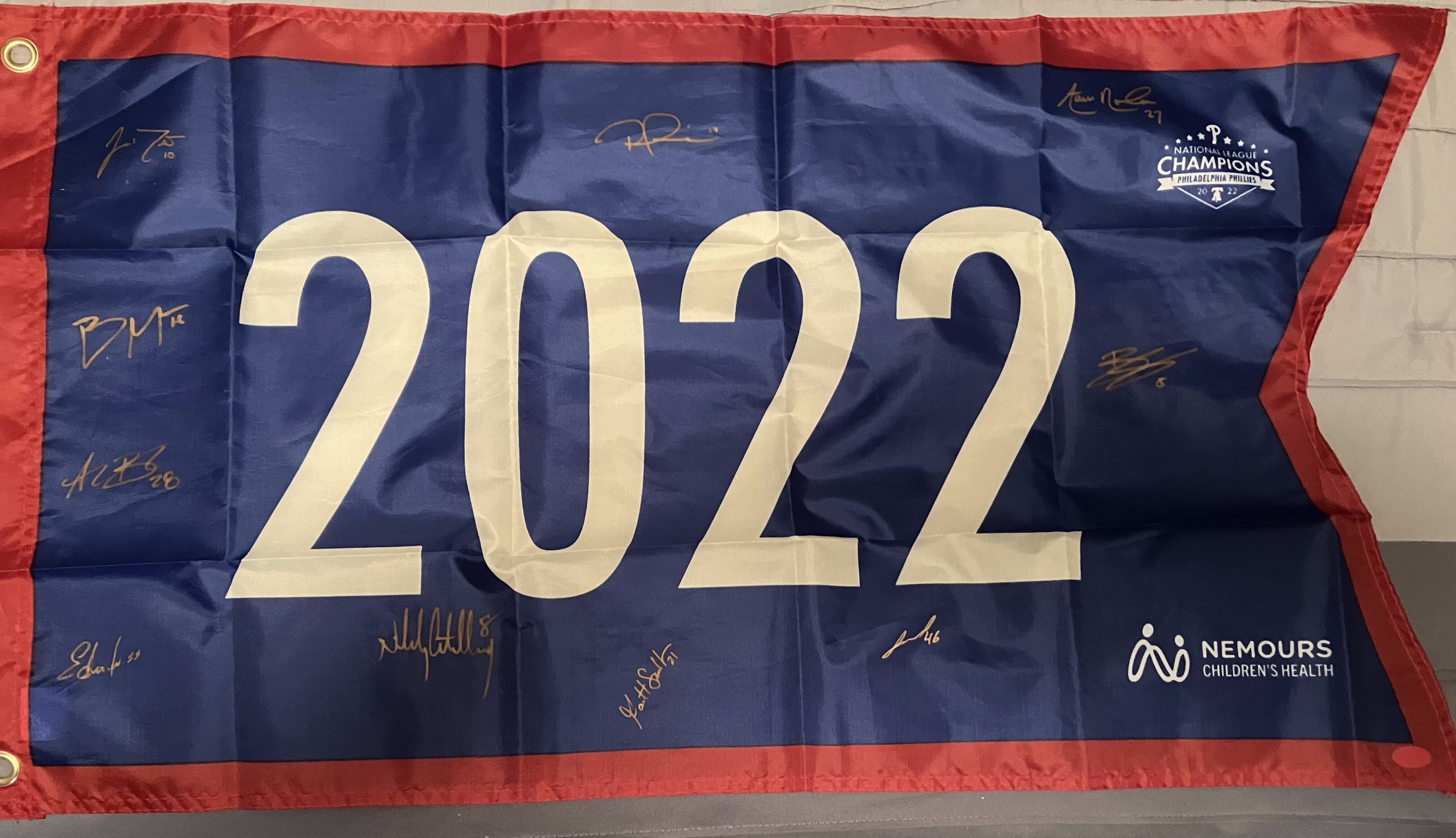 2022 Philadelphia Phillies NL East Champion Pennant Flag (SGA) Autographed by 10