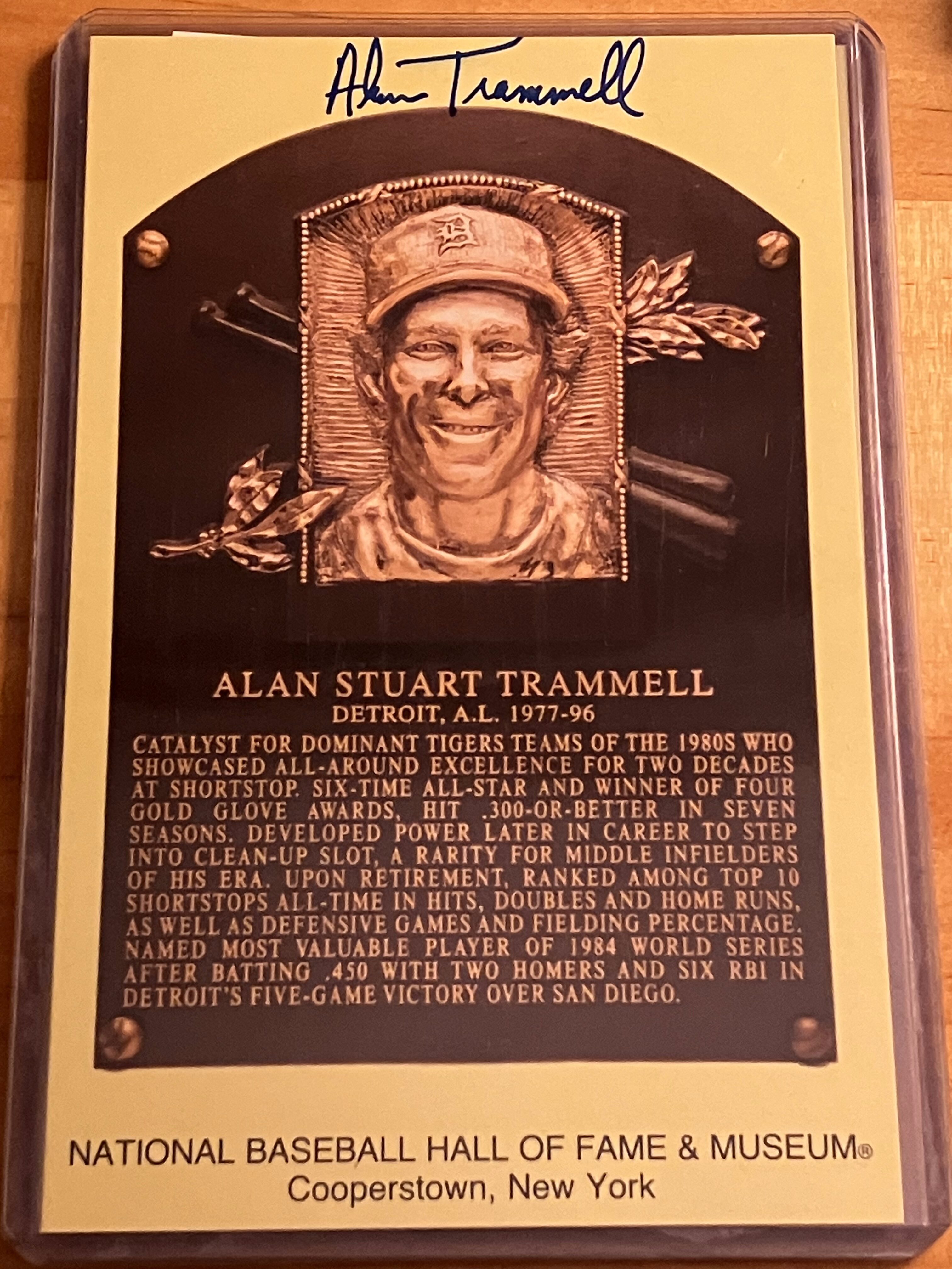 You are purchasing an autographed Alan Trammell Hall of Fame Postcard signed by the Detroit Tigers Hall of Fame SS. This item is JSA authenticated.
