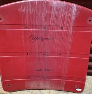 You are purchasing an autographed Fenway Park (Boston Red Sox) stadium seat bottom signed by “The Hawk”, Hall of Famer Andre Dawson. This item includes the inscription “HOF 2010” and is JSA authenticated.