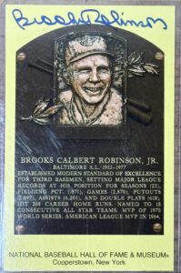 You are purchasing an autographed Hall of Fame Postcard signed by one of the greatest 3B ever, the Human Vacuum, Hall of Famer Brooks Robinson. This item is JSA authenticated.
