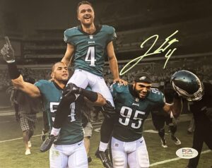 You are purchasing an autographed 8×10 photo signed by Philadelphia Eagles kicker and 2x Super Bowl Champion, Jake Elliott. This item is PSA authenticated.