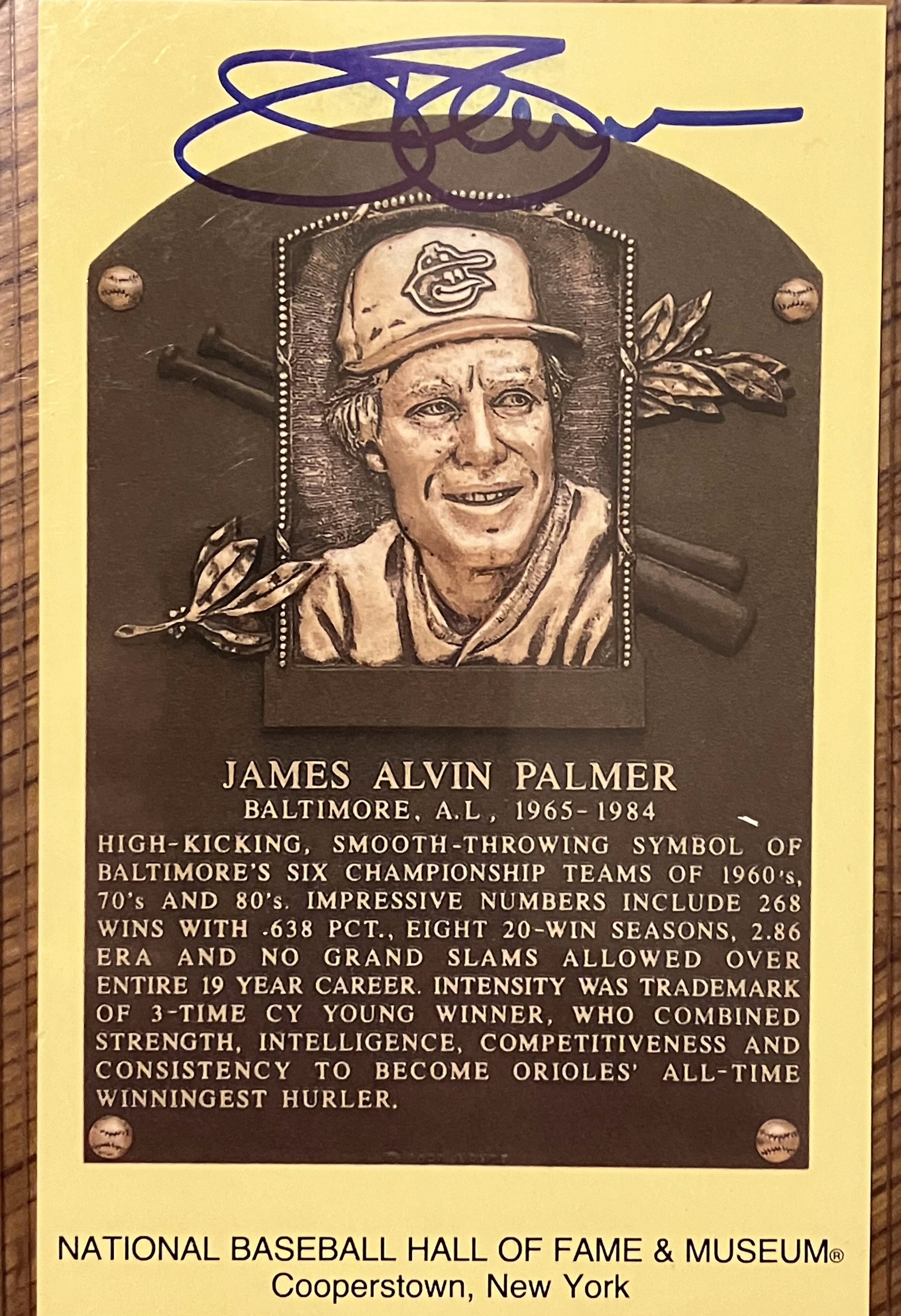 You are purchasing an autographed HOF Postcard signed by Orioles Hall of Fame pitcher Jim Palmer. This item is JSA authenticated.