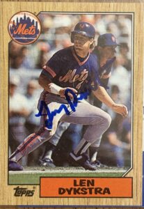 You are purchasing an autographed 1987 Topps Baseball card signed by former NY Mets and Philadelphia Phillies CF, Lenny Dykstra. This item is PSA authenticated.