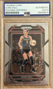 You are purchasing an autographed 2023 Panini Prizm Basketball card signed by Indiana Fever star and one of the WNBA’s top defensive players, Lexi Hull. This item is PSA authenticated.