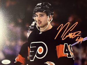 You are purchasing an autographed Philadelphia Flyers 8×10 photo signed by Noah Coates. This item was signed in bold orange paint pen and is JSA authenticated.
