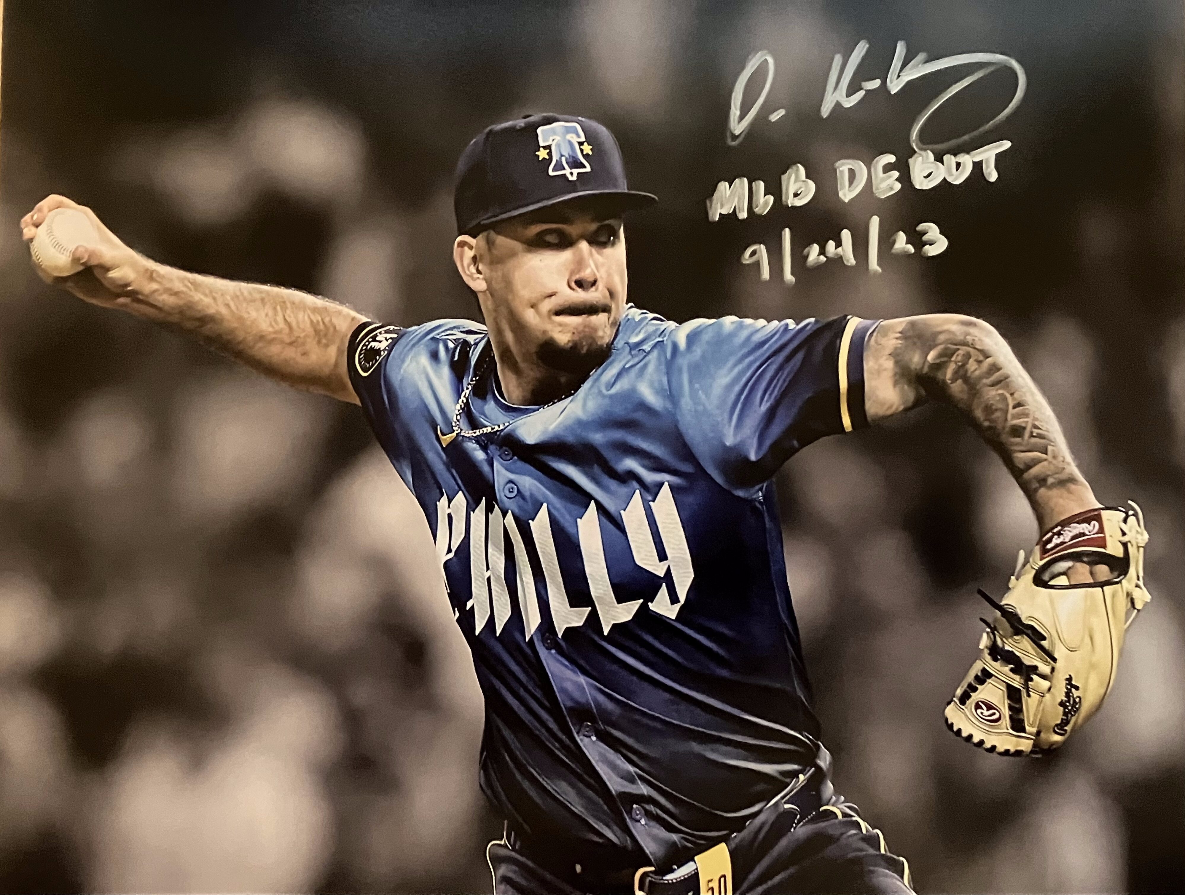 You are purchasing an autographed Philadelphia Phillies 8×10 photo signed by Philadelphia Phillies relief pitcher, Orion Kerkerig.  This photo is in the Phillies City Connect Uniform and contains the inscription “MLB Debut 9/24/23”.  This item comes with a Cardz & Starz Card of Authenticity.