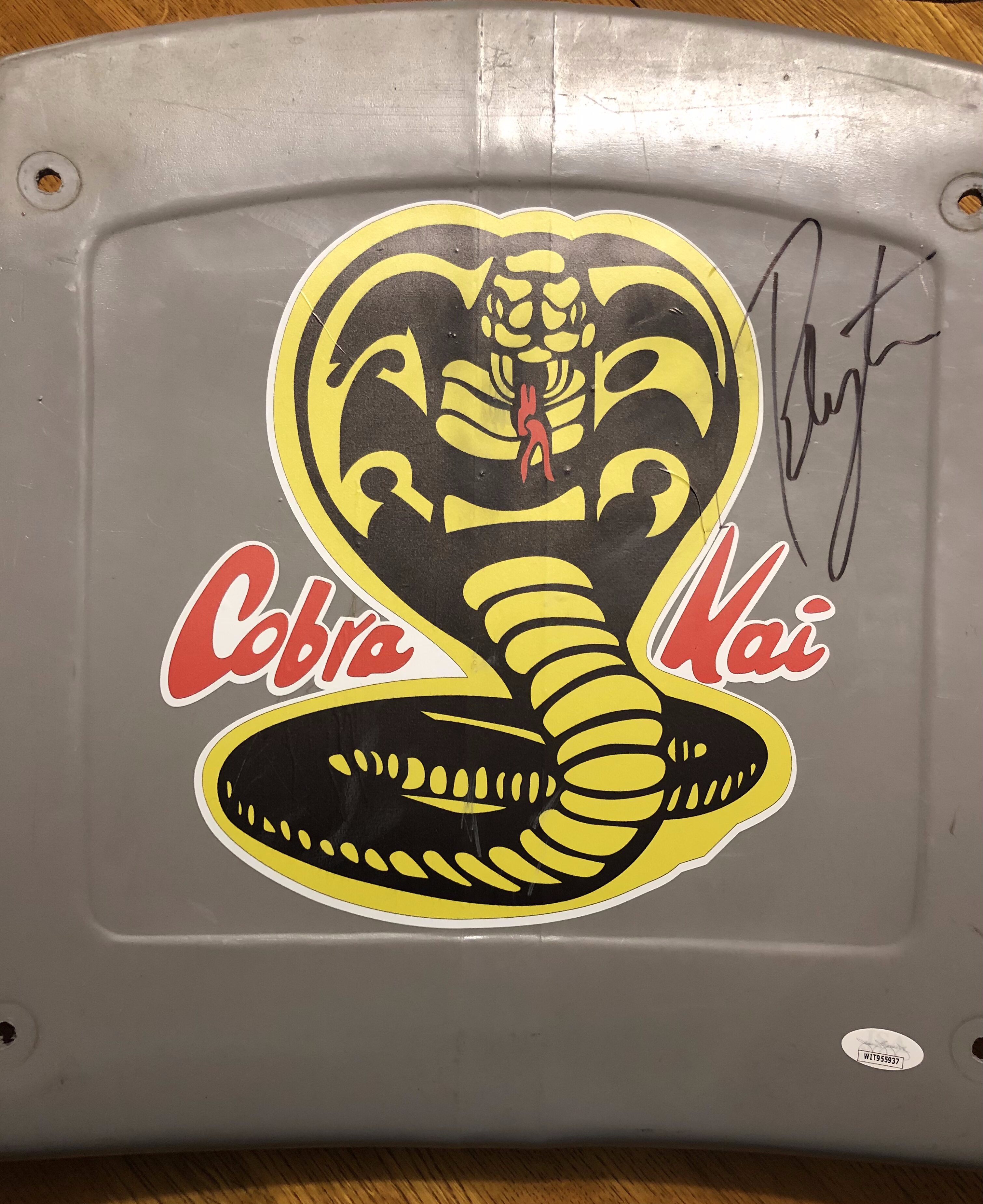You are purchasing an autographed Cobra Kai stadium seat signed by actress Peyton List. This item is JSA authenticated.