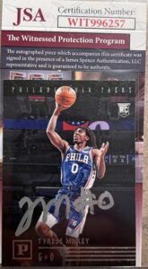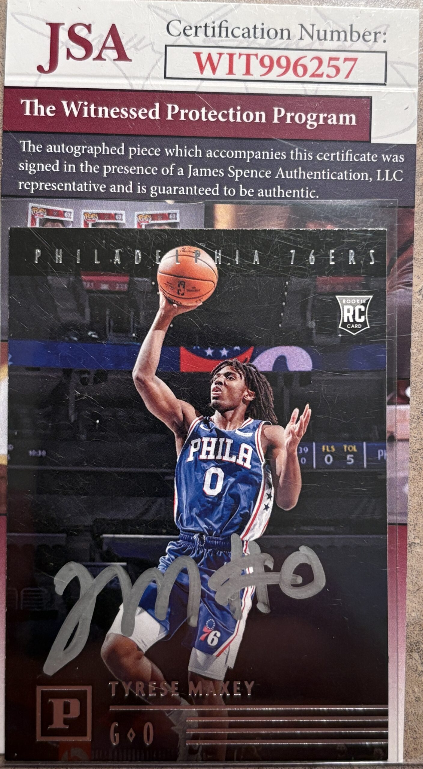 You are purchasing an autographed 2020/21 Panini Chronicles Rookie Basketball card signed by popular Philadelphia 76ers Guard, Tyrese Maxey. This item is JSA authenticated and is the exact item you will receive.